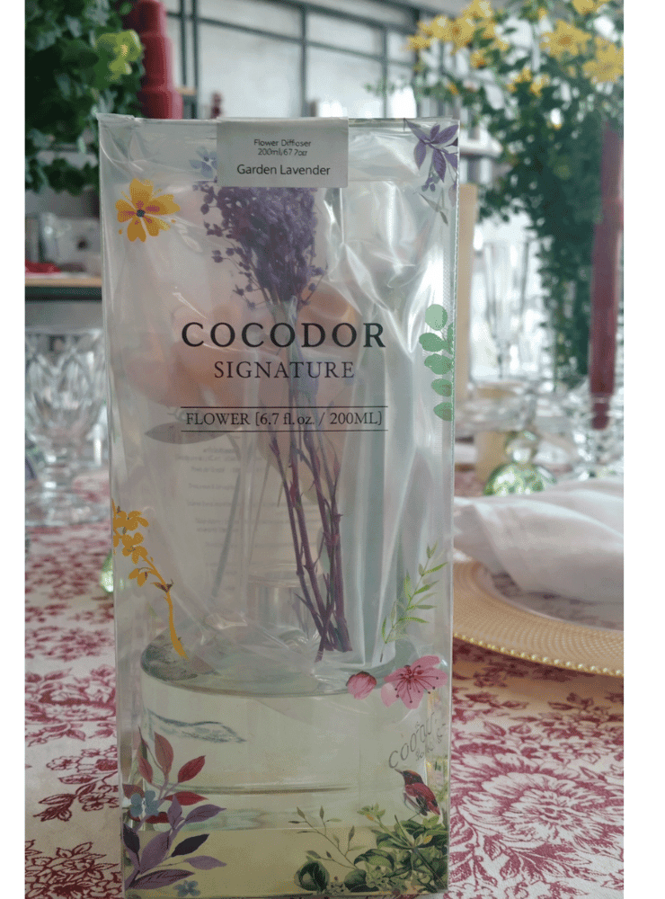 Este difusor destaca por su diseño floral elegante, que incluye flores naturales preservadas y varillas difusoras que liberan el aroma de forma continua y equilibrada. Su presentación lo convierte en un elemento decorativo encantador, perfecto para cualquier rincón del hogar u oficina.