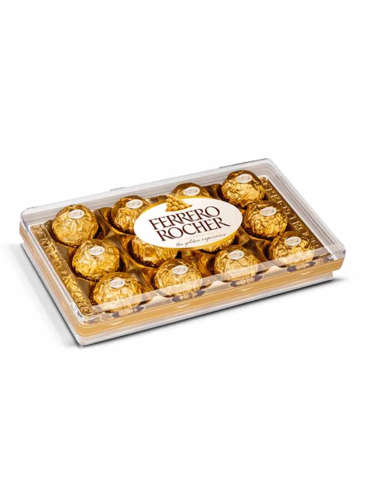 Indulge en la riqueza y el sabor de Ferrero Rocher con nuestra caja de 12 unidades. Cada chocolate es una delicia para los sentidos, con su relleno de crema de avellana suave y su cubierta de chocolate fino. Perfecta para compartir o disfrutar en solitario, esta caja es un regalo para cualquier ocasión. Disfruta de la combinación perfecta de texturas y sabores que te dejarán sin aliento.